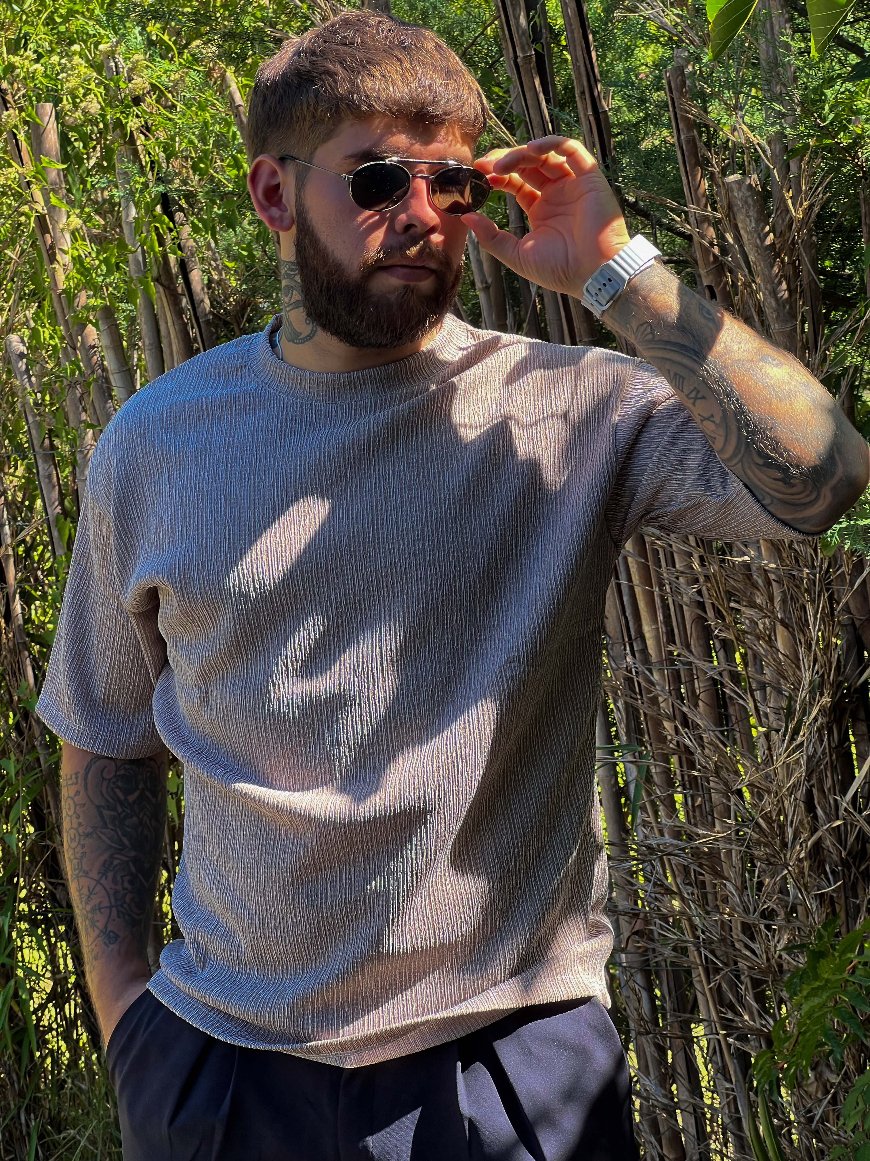 Diseño, elegancia y personalidad en una prenda única. Esta remera en tono beige premium se distingue por su textura plisada vertical que genera un efecto visual sofisticado y moderno, aportando movimiento y profundidad al look. Confeccionada en una tela liviana, suave al tacto y de excelente caída, ofrece comodidad total sin resignar estilo. Ideal para quienes buscan una prenda diferente, versátil y con identidad propia. Perfecta para outfits urbanos, casuales o más formales según cómo la combines.